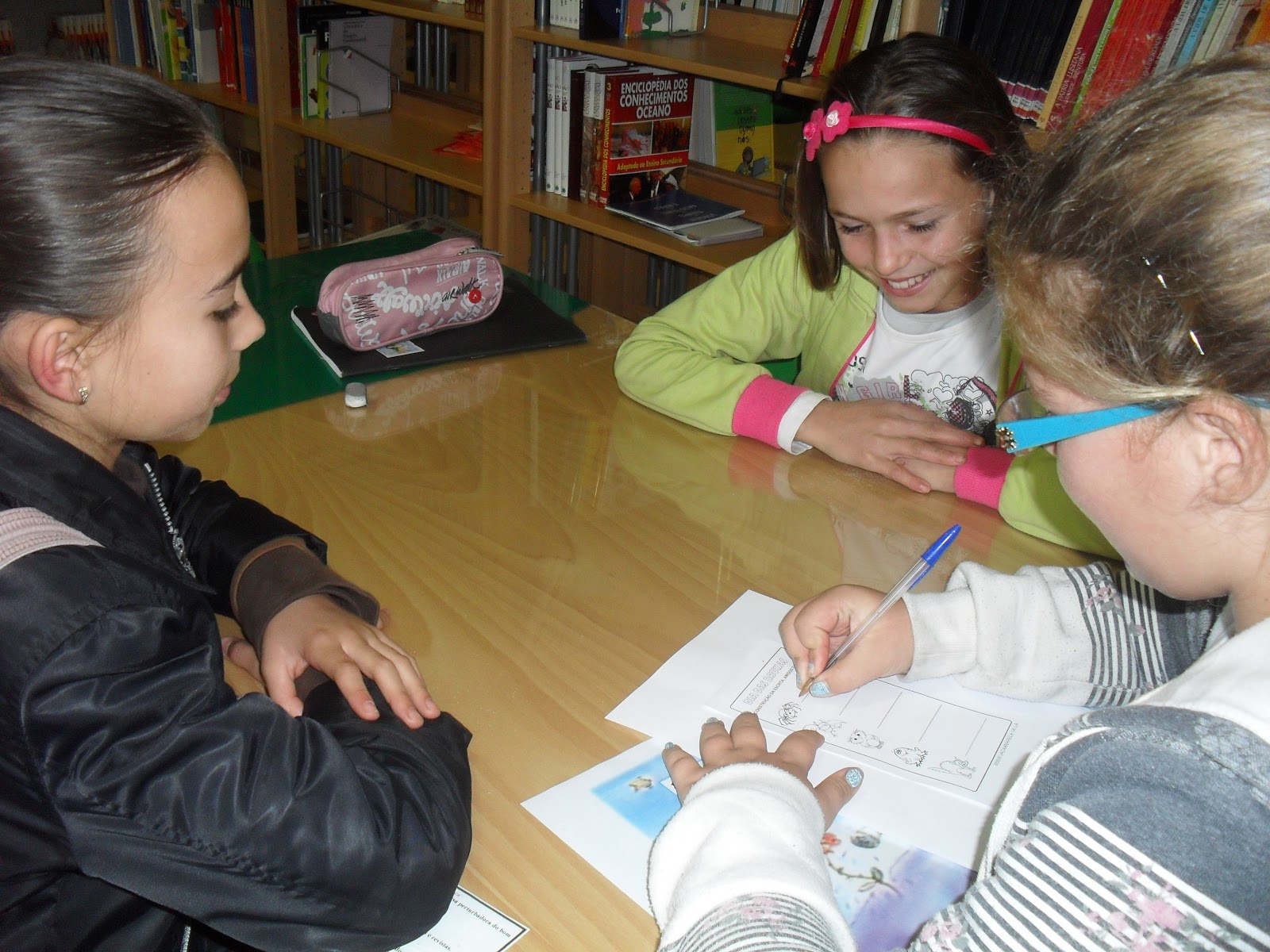 Na biblioteca é um local para fazer TPC, ler livros e ir ao computador. – Diogo