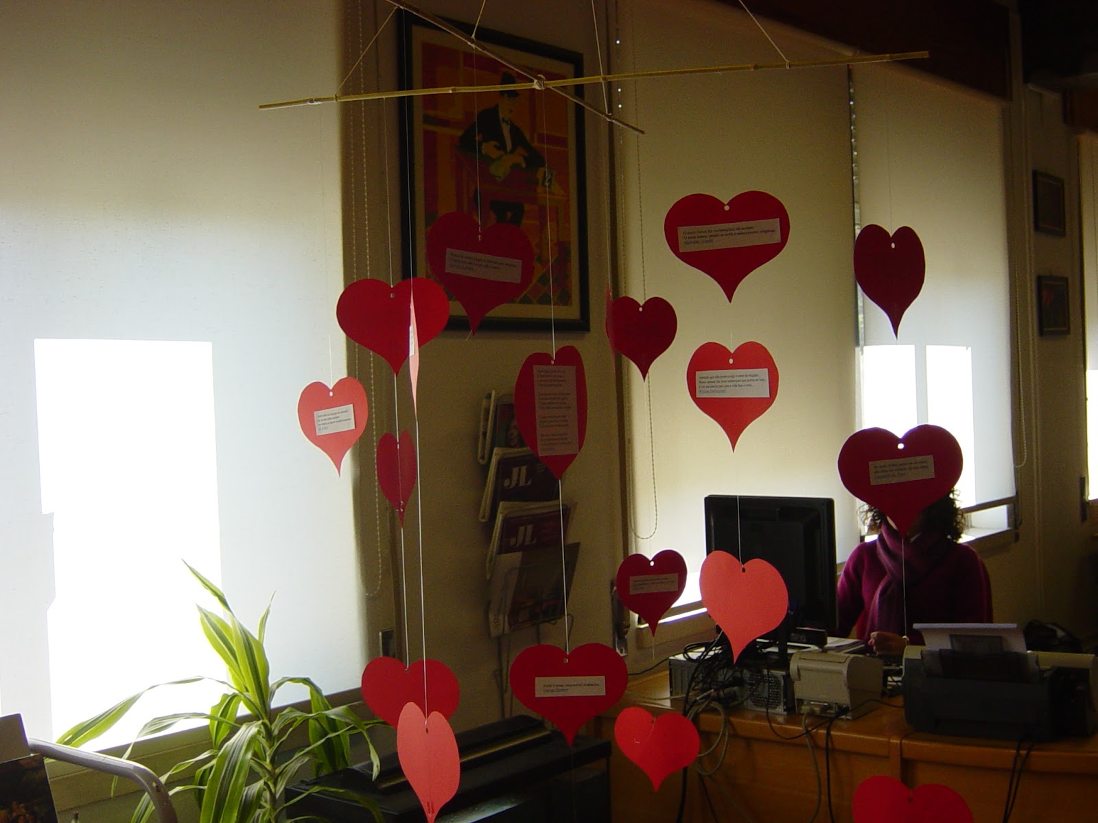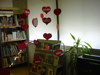 Na biblioteca o dia de S.Valentim festeja-se com livros de afeto e romance e, claro está, com corações. Corações de poesias e frases de amor. Vale a pena espreitar!