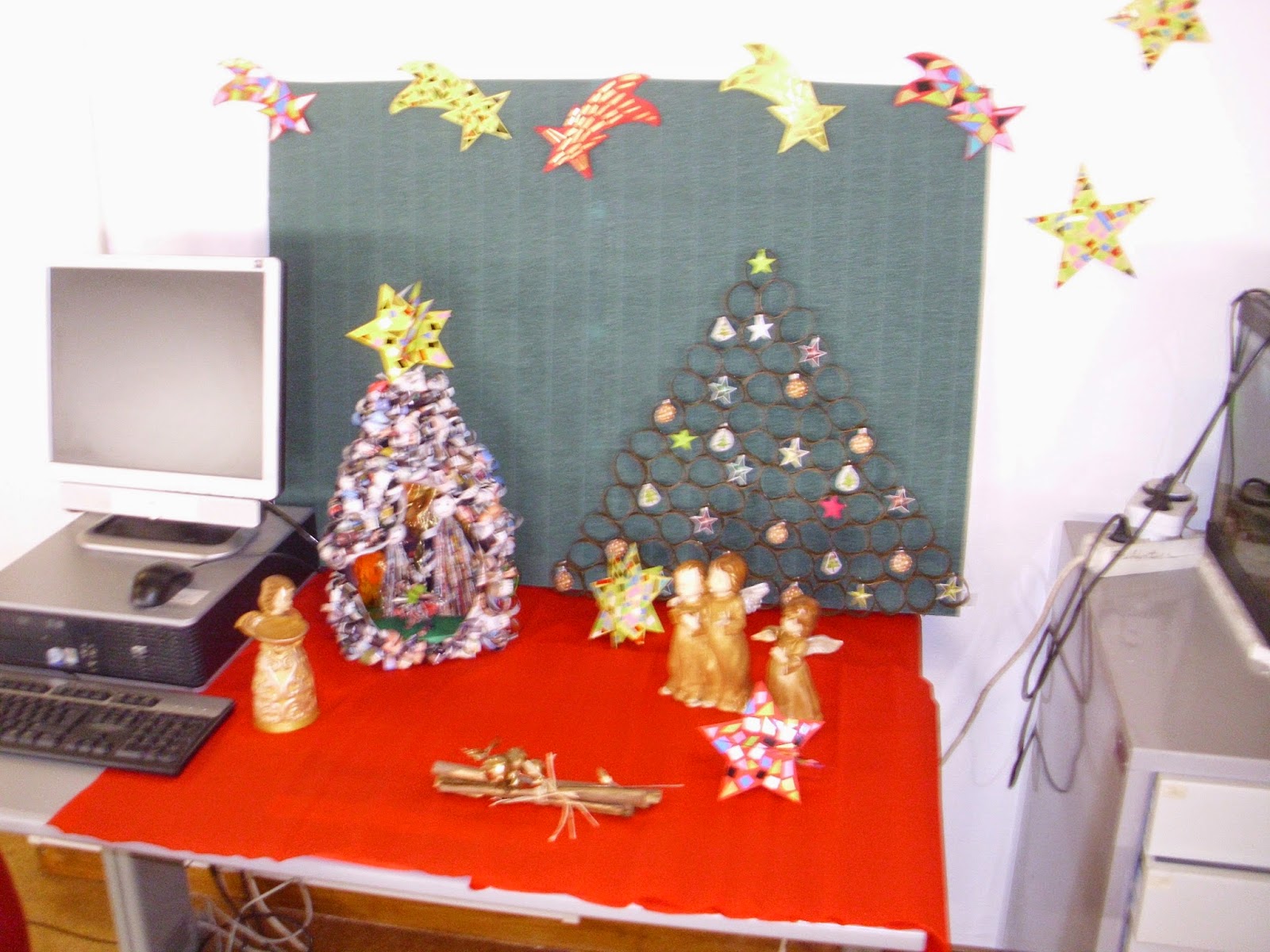 A Professora Margarida Pinto realizou um excelente trabalho e sempre com preocupações ambientais, pois foi tudo concebido com materiais reciclados.